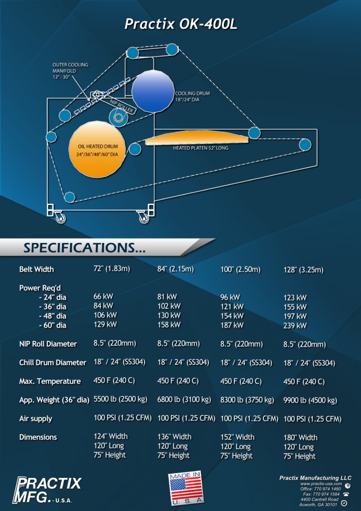 OK-400 continuous belt press specifications include: