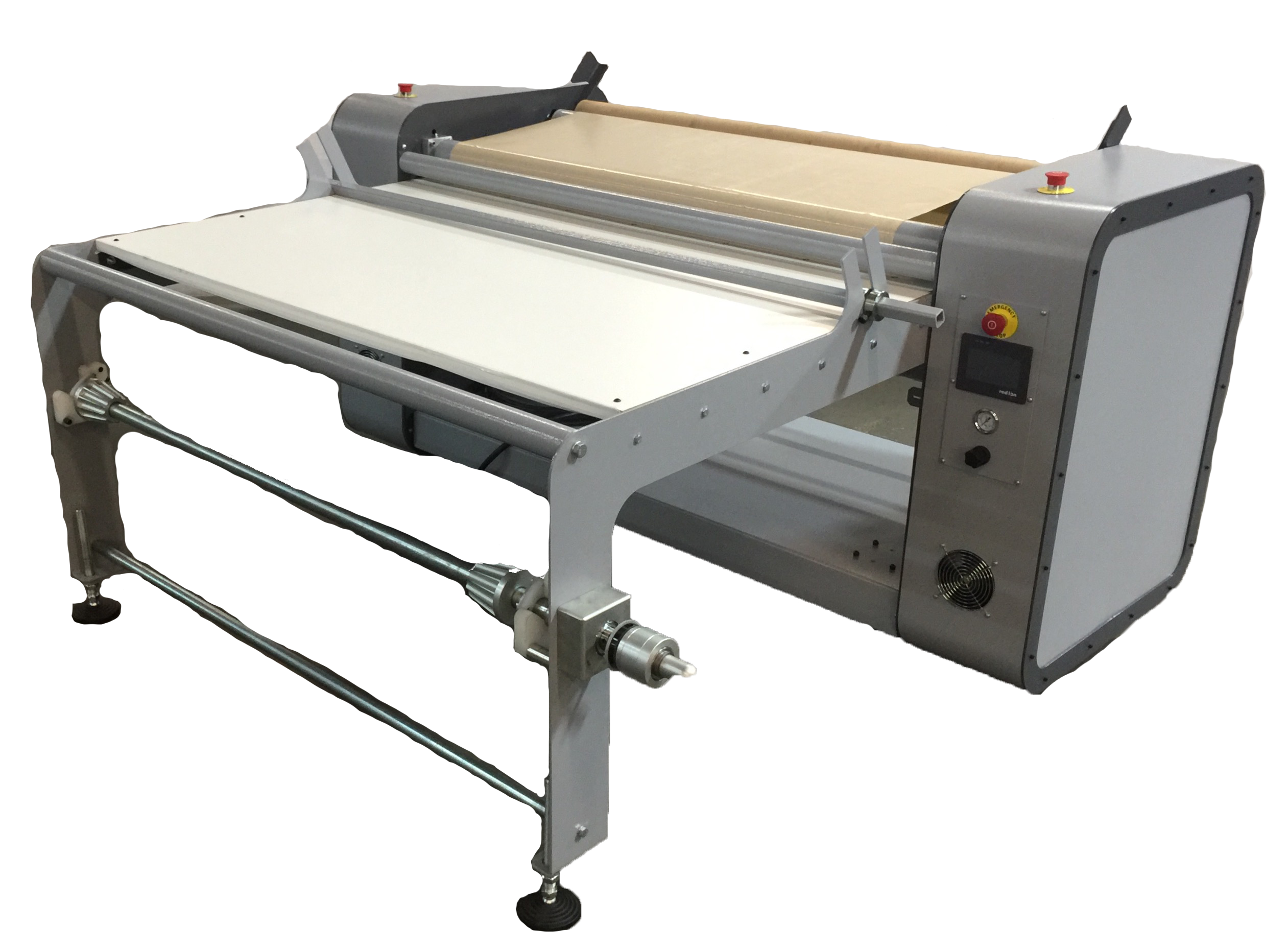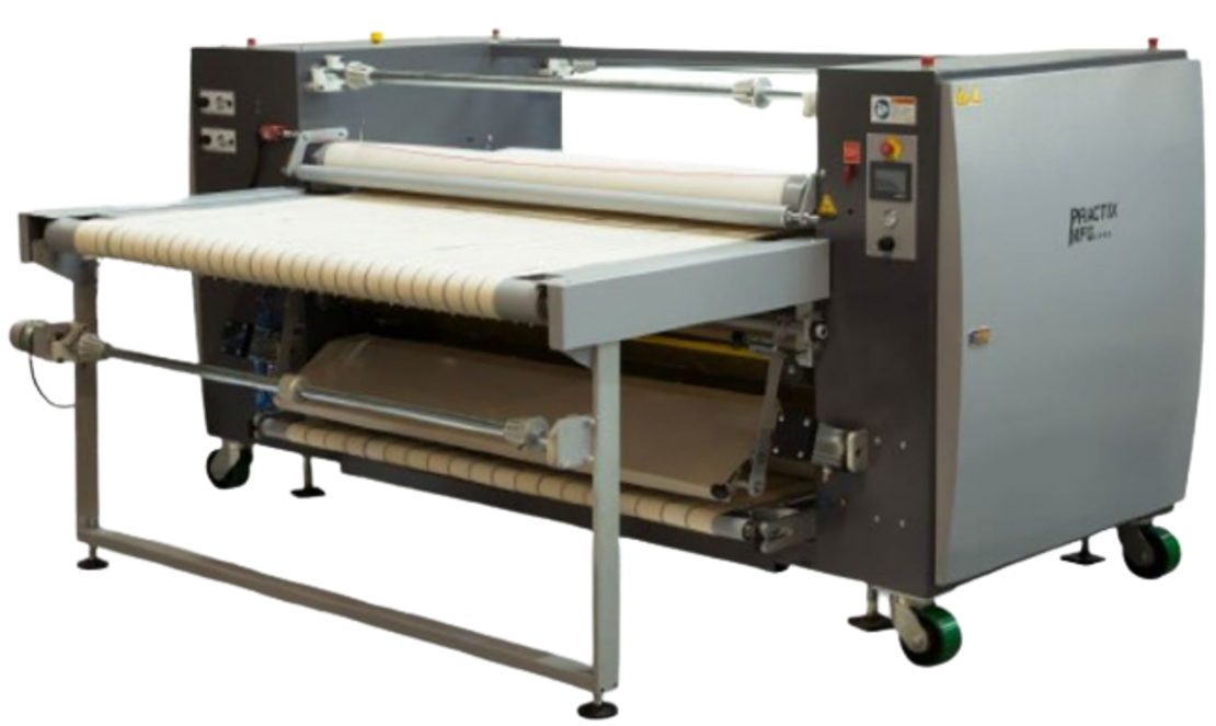 One of the most innovative names in sublimation equipment, Practix offers the unmatched narrow web continuous belt rotary machine lines. The machine lines provides true solid state heat control or oil heated system depending on model, producing constant and even color transfer for high-speed, continuous fabric sublimation. These machines put together decades of engineering and design expertise for the most efficient continuous belt sublimation machinery on the market. The unique Practix channel tracking technology keeps the belt centered on the large 24” diameter drum, avoiding costly delays. Furthermore, the dual unwind system allows the loading of more paper without stopping. This keeps the job rolling as long as you need and saves you valuable time and money.The performance of these machines is a technological marvel, but the real ingenuity of this sublimation equipment is in its convenient design. It’s unitized, making it portable, compact, and durable without separate pieces, which can loosen or break over time. The cantilevered design also allows the operator easy access to the rolls.